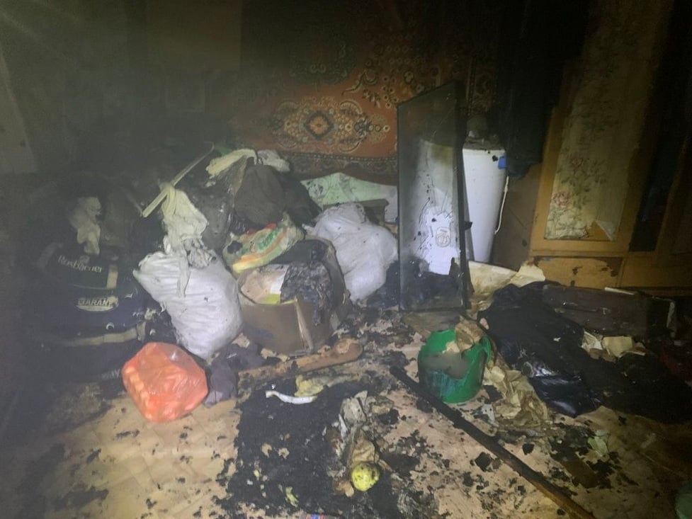 Прибывшие спасатели ликвидировали пожар. Огнем поврежден пол и стена, закопчены стены и потолок в доме.