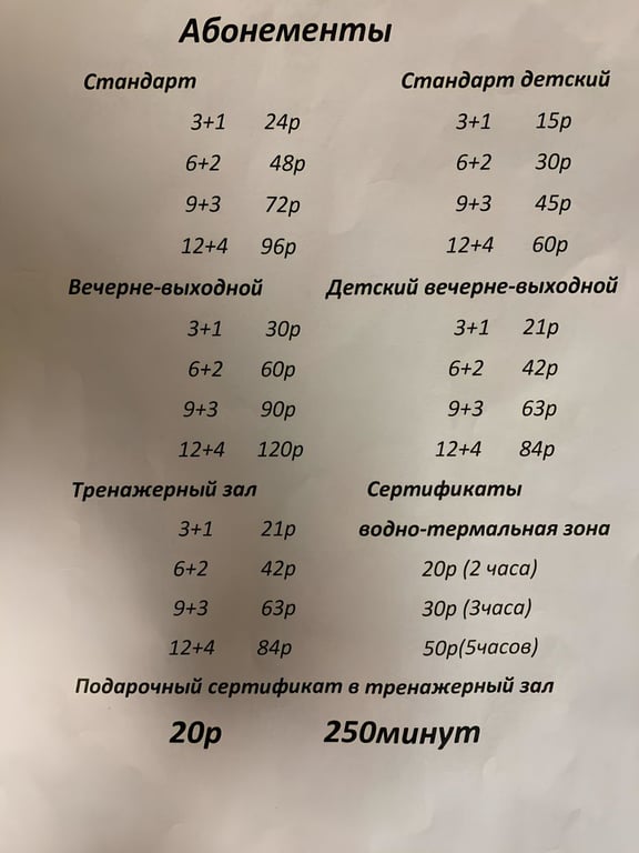 Также имеются подарочные сертификаты на посещение водно-термальной зоны и тренажерного зала.