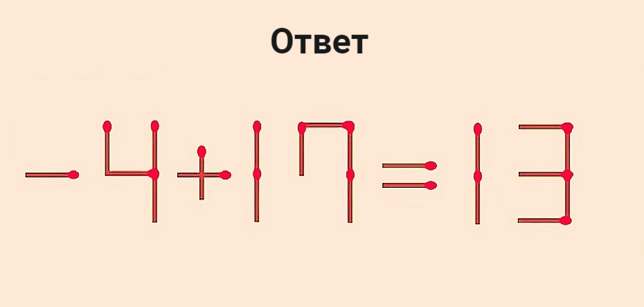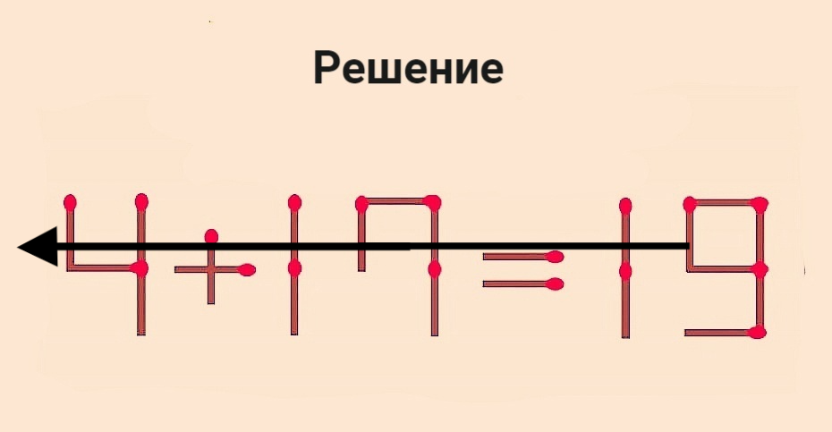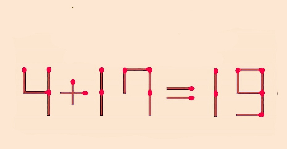 Задача для мудрецов: переставьте 1 спичку в примере 4+17=19, чтобы он стал верным
