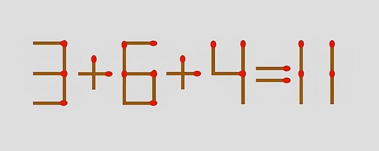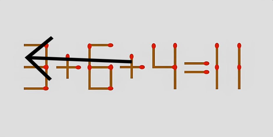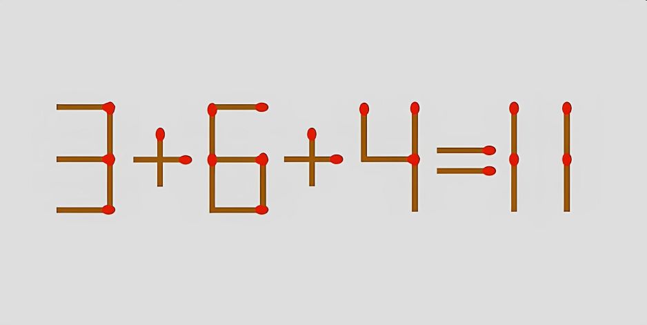 А наши числовые головоломки? Ведь их бы тоже не было! Например, такой: 3+6+4=11. В ней нужно переставить 1 спичку, чтобы решение стало верным. Время на размышления — 1 минута.